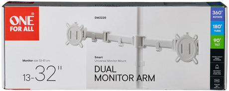 €54,18Precio unitario /AgotadoMuy poca disponibilidad (2 unidades)Support moniteur - ONE FOR ALL - Dynamic - Vesa 100 - Double Bras - 13 a 35'' - Blanc
