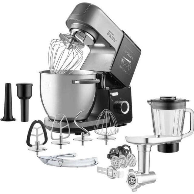 Le robot pâtissier Sencor STM 8950 est un appareil puissant de 1800 W avec un bol en acier inoxydable de 6,7 L. Il inclut 4 accessoires pour pétrir, battre et mélanger, ainsi qu'un hachoir a viande. Son design robuste et son panneau de commande tactile facilitent son utilisation. Idéal pour réaliser des pâtisseries et des plats variés.
