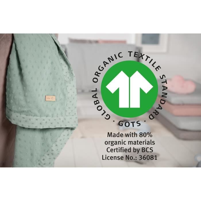 ROBA Couverture Bébé Bio Lil Planet 80x80 cm Certifié GOTS - Motif Pois - Vert