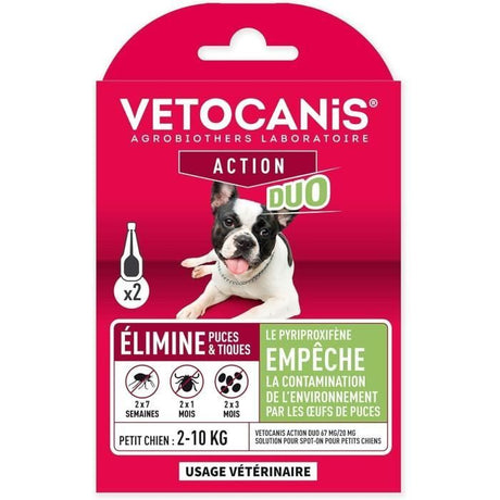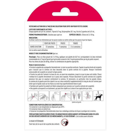 Pipettes antiparasitaire - VETOCANIS - Pipettes Action Duo 67mg/20mg Solution pour Petits Chiens