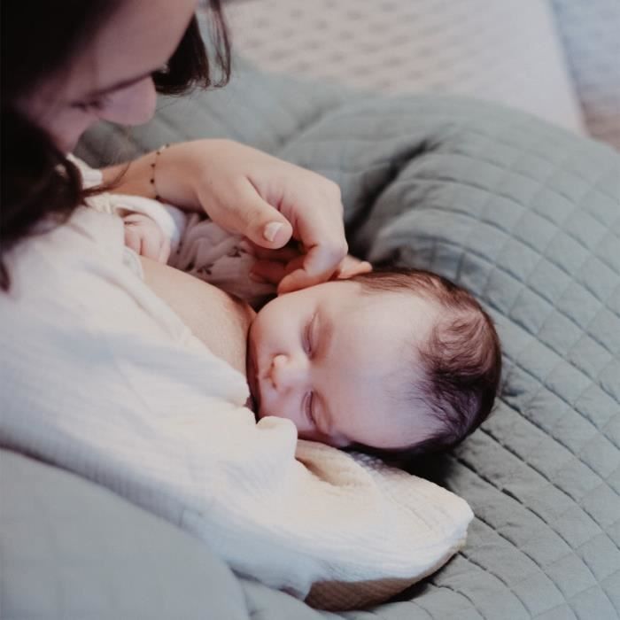 BÉABA - Big Flopsy - Coussin de grossesse et d'allaitement - Fleur de coton - 180 cm - Vert Sauge