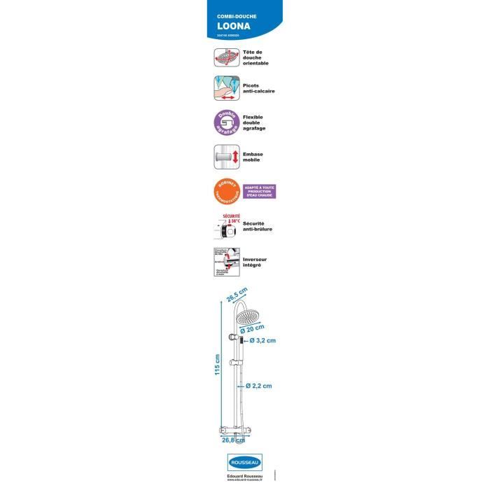 Edouard Rousseau - Colonne de douche avec robinetterie LOONA - Finition chromée