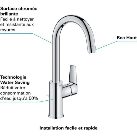 Mitigeur monocommande Lavabo GROHE - Taille L - Col de cygne - Chromé