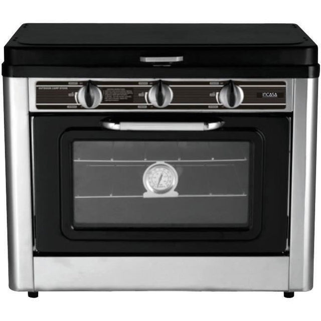 Découvrez le combiné four et réchaud INCASA, idéal pour le camping. Avec un four de 25L et deux plaques chauffantes, il fonctionne au gaz propane et butane. Conçu pour l'extérieur, il offre performance et praticité avec des accessoires inclus. Parfait pour cuisiner en plein air !