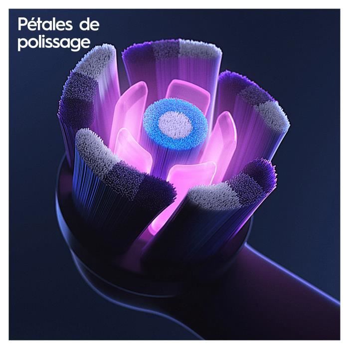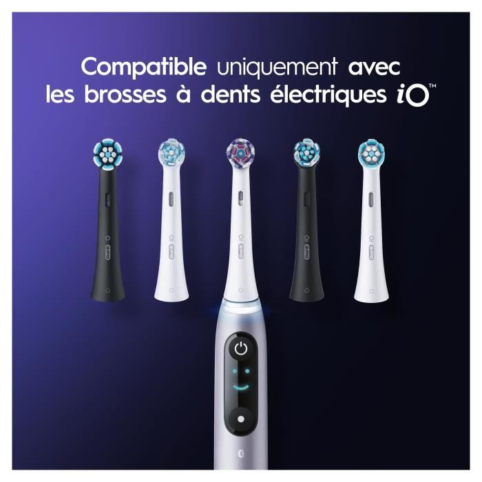 La brossette Oral-B iO Radiant White associe une brosse ronde d'inspiration professionnelle et des ÈlÈments de polissage afin d'Èliminer en douceur les taches en surface, pour des dents plus blanches des le premier jour.
