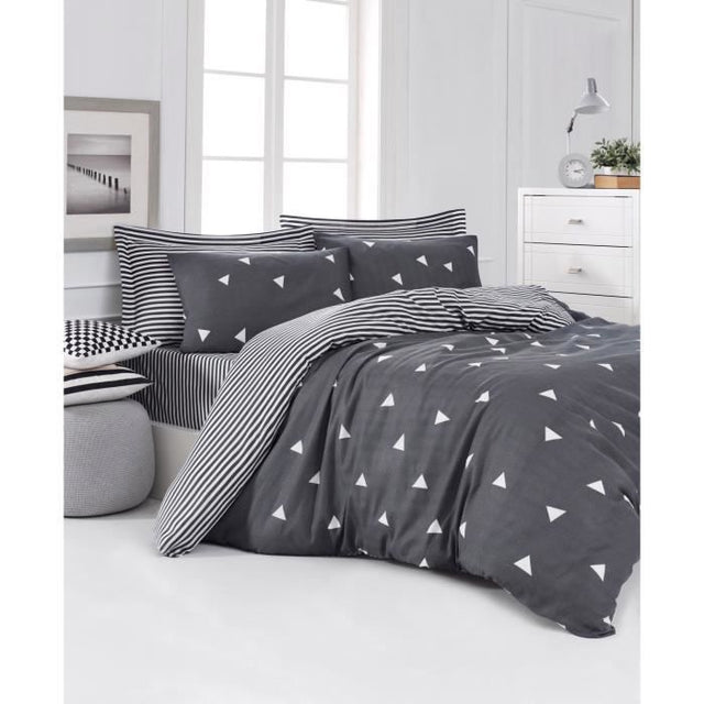 Parure de lit - 1 housse de couette 220 x 240 cm + 2 taies d'oreiller 60 x 60 cm - 65% coton, 35% polyester - Gris